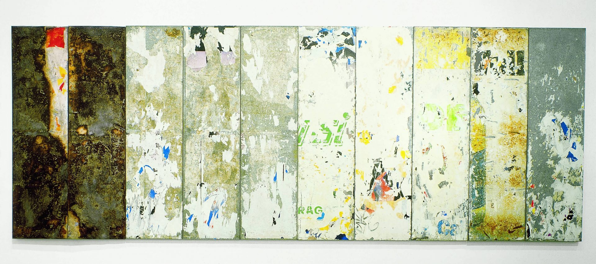 M.I.T. Project was presented for the first time in 1990, shortly after the artist created Computer Project, in which, through the help of a computer, he created a complex dimensional map of an imaginary city. M.I.T. Project is, however, three dimensional, allowing the viewer to move around its interior. The space, divided in five interconnected compartments, is composed of ideograms, formally organised but indeterminate in their significance. In this uninhabited world the different levels of perception, from tangible to intangible, are represented through colours. The green zone is equivalent to the realm of material elements. The blue zone represents the everyday, the city, the daily order of people and actions. The yellow rectangle in the middle, represents the arts and sciences. The black space represents language. A semicircle with red walls, represents the subjective realm, pure meaning. Open in its nature, the work is both sign and invention, real and imaginary, logic and utopia.